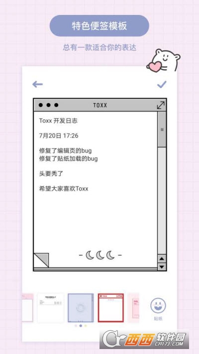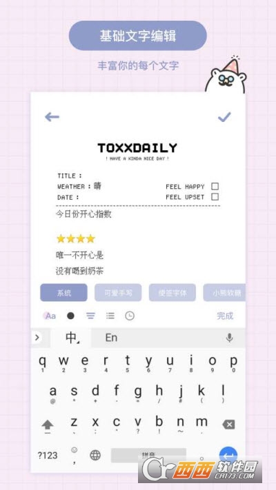 TOXX软件是一款可爱风的手机日记软件,用户可以在这款软件上写日记或者记录账单,将有意义和容易遗忘的事情记录上去,方便查看,有多种颜色和主题供用户自由更换,有需要的朋友快来下载吧!