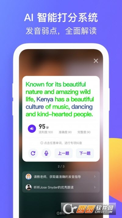 AI精准分析学习偏好及知识漏洞,智能推荐学习内容,量身定制学习路径。支持对发音、流利度、完整度等多重维度的口语评估打分。