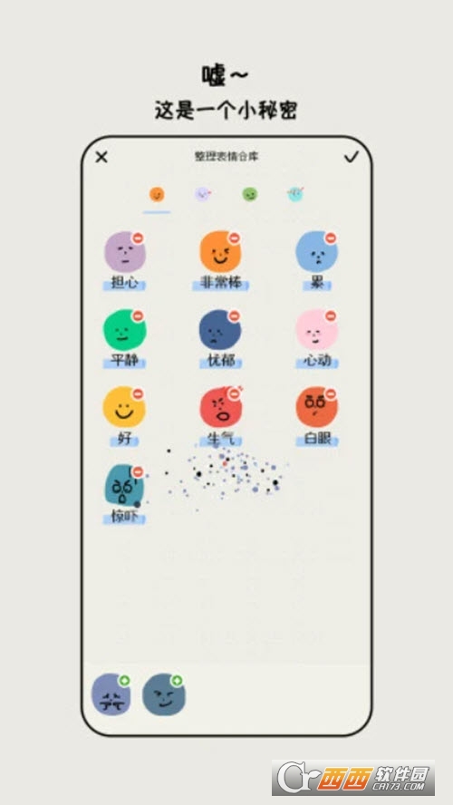 2、每一个表情都会被记录下来,不同的表情可以配上不同的颜色,各种丰富的表情都可以被创造出来;