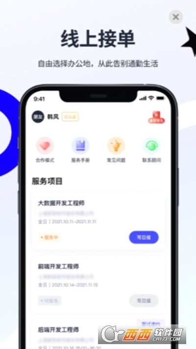 您可以应用通过完成线上接单、线上结算、线上沟通,自由选择办公地点,从此通勤是路人