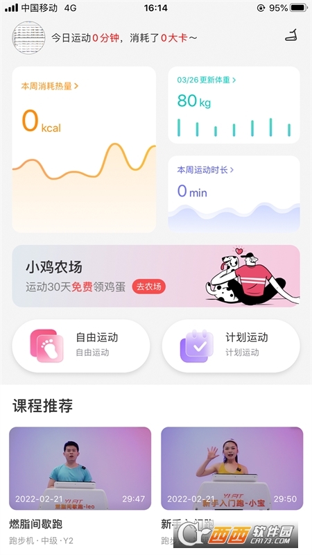 2、软件中主要有课程运动、自由运动、计划运动三个运动模式。