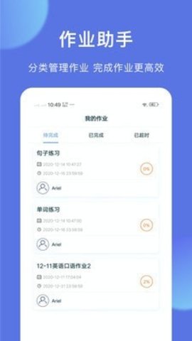 1、随时随地进行作业答题,个人的作业完成情况以及得分信息轻松查看;