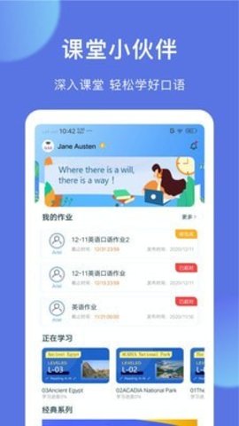 1、在线即可报名喜欢的英语学习课程,在课程管理中随时查看;