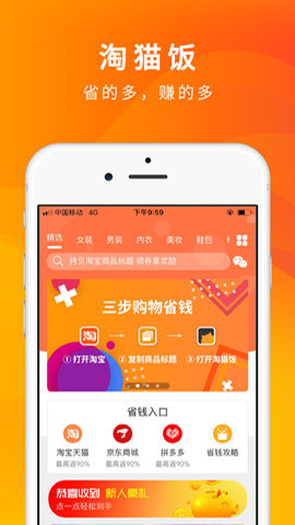 例子:淘宝平台某商品原价99元,领大额优惠券60元,再获得返利20元。实际到手只需19元!