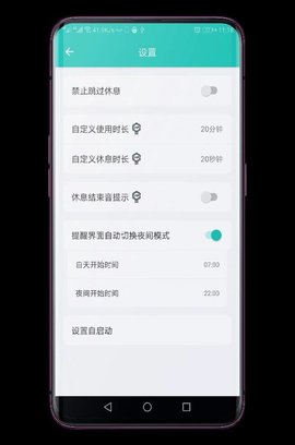 【强制休息】您可以设置强制休息,以防自己由于忍受不住诱惑关闭护眼或不按时间休息。