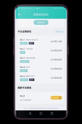 【详细的统计】app内能够查看您软件的使用时间、开启次数,与以往对比、以及与其它用户对比,看看自己是否在某个app上面消耗时间过度,用眼过度,帮助您更好的规划手机的使用。