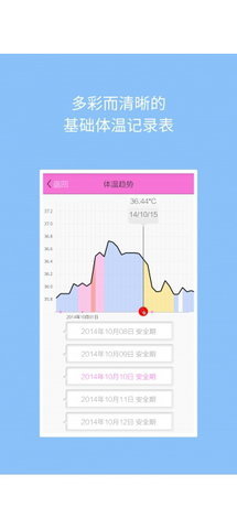 【掌握月经周期】根据客观的基础体温采集,用图形化的方式和科学的分析展示月经的不同阶段,让您提前做好大姨妈驾到的准备。
