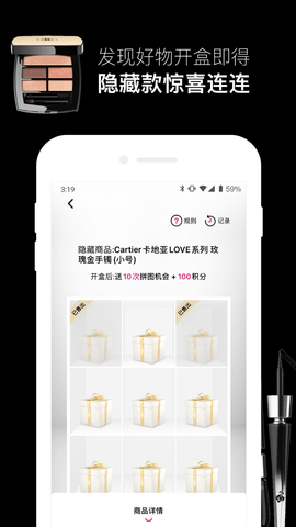 1、一款专注于美妆饰品的盲盒商城,来悦佳盲盒app小伙伴们可以即买即开;