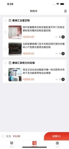 3、购物下单:可以一次将自己需要的商品全部放在购物车,一键就可以选择所有商品下单。