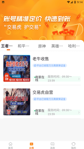 交易虎手游交易平台app最新版是一款专门为游戏玩家提供游戏账号,道具,游戏币等的交易平台,里面支持超多热门游戏的交易,而且有着找回包赔,高价回收的服务,有需要的玩家快来下载看看吧!