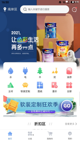 2,所有的商品在软件上建立了非常完善的分类模式,包括水电以及油漆还有各种主要的建材商品,让用户可以更加轻松的来选择各种商品。