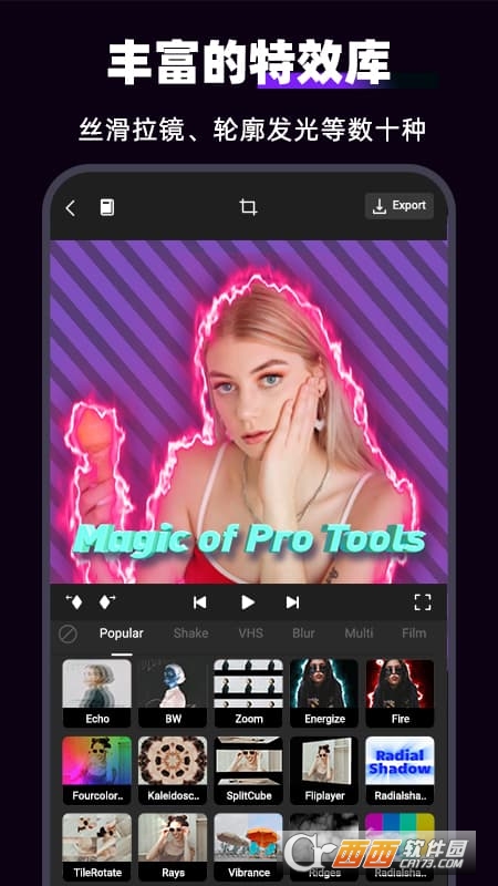 提供了编辑动画、滤镜、特效、蒙版、色度键等等专业功能,只需轻滑指尖即可做出更多的新视频;