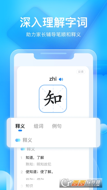 1、字词学习:轻松自主学习字词笔顺、读音、释义、组词等,由易到难,提升孩子学习能力