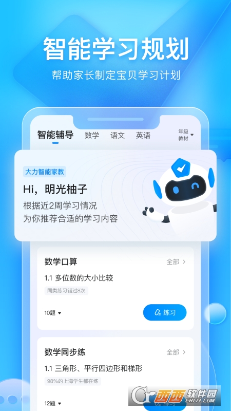 1、自主学习:智能辅导提升孩子自主学习能力,趣味练习激发孩子学习兴趣,让家长省时更省心。
