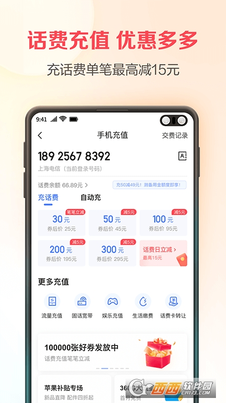 2.通信缴费:手机话费充值、流量充值、固话缴费、宽带缴费等;