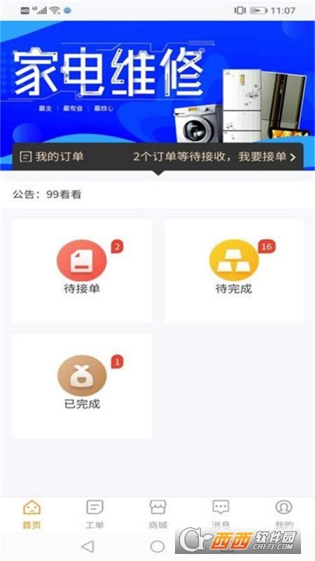 1、一款专业的上门家电维修服务凭条,功能强大,众多老师傅在这里入驻。