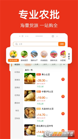 1、农产品批发商城,提供大量生鲜农副产品,品类齐全,价格实惠;