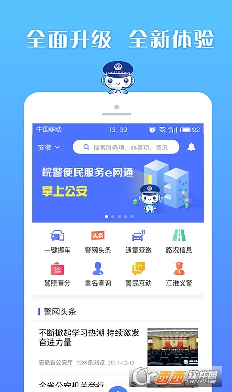 皖警便民服务e网通app系安徽省公安厅官方发布,皖警便民服务e网通app提供一键挪车、警网头条、违章查缴、户政治安、出入境管理等161项公安服务一网通办,更有实名认证、办事进度查询、绑定车辆第一时间获取挪车提醒和违章信息、资讯分享点赞等便捷功能。