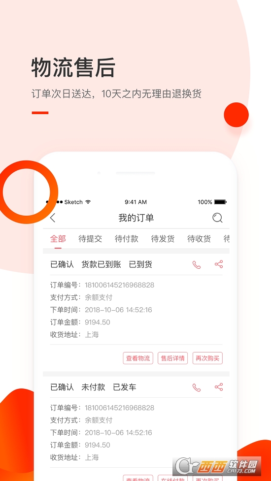 1、设置了丰富的订单状态栏目,这里有订单、付款、配送和退货单几种类别栏目;