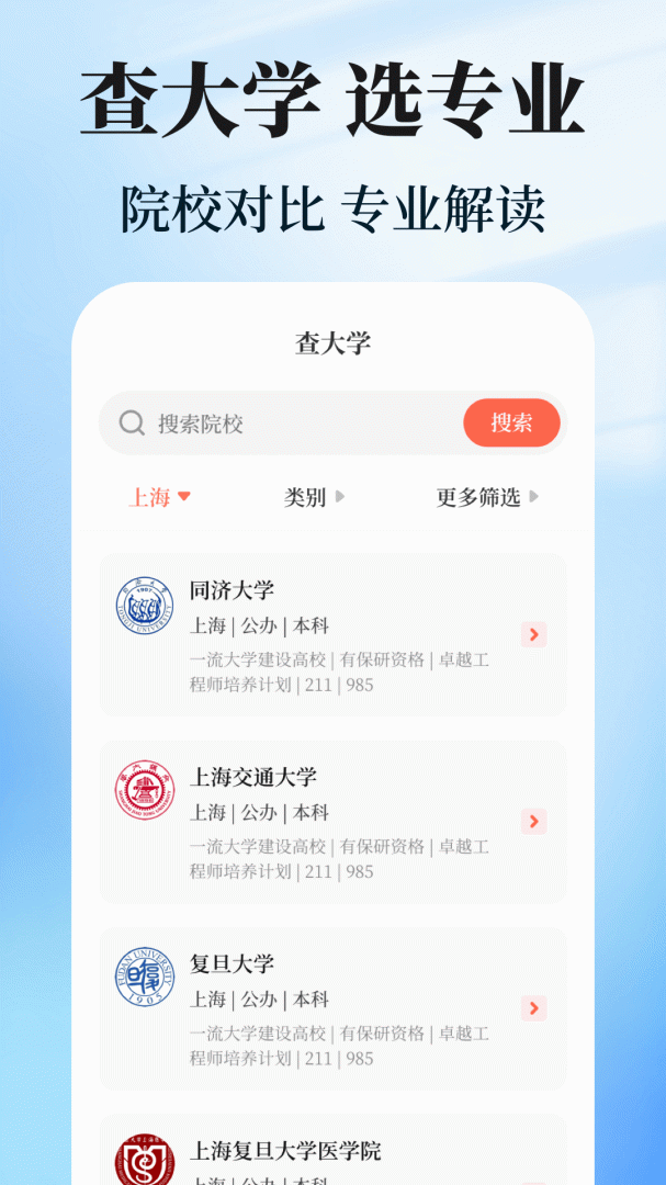 3、这里拥有非常多的查询工具可以使用,无论是查询大学还是专业等都可以。