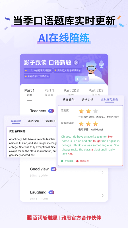 - 提供海量雅思词汇和例句,帮助用户扩展词汇量
