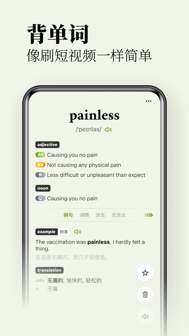 “无痛单词”是一款专注于帮助用户轻松学习单词的手机应用,该应用提供了丰富多样的单词学习方式,包括单词打卡、记忆游戏、语境填空等多种模式,用户可以根据自身需求,选择适合自己的学习方式进行单词记忆,与传统背诵不同,“无痛单词”通过趣味化的学习方式,让用户在轻松愉快的氛围中提高单词量,应用还提供了单词发音功能,帮助用户正确学习单词发音,如果你想增强词汇量,提高语言表达能力,不妨试试这款便捷实用的学习工具。