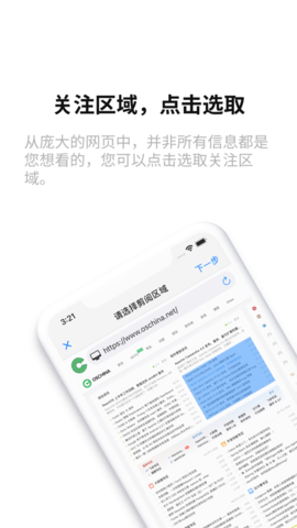 3.如果使用《网页剪阅》的话,你只需要事先设置好关注区域,区域内的文章就可自动提取出来。