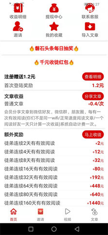3、磐石头条app还有多种福利活动,并且提取门槛也很低,更有千元收徒红包等你来领取,每月轻松赚取千元零花钱。