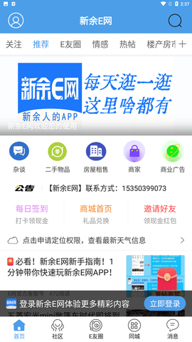 新余E网app手机版是一款能够让我们用户快速了解到最新资讯的平台,多样的内容加上细致的分类给我们地阿莱最好的阅读体验,同时还能够和其他用户一起进行讨论十分的方便