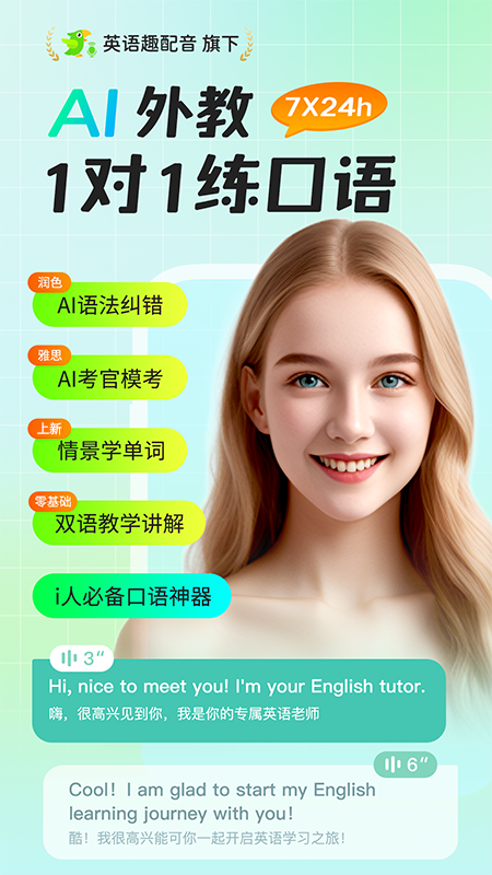 口语练习:AI外教提供丰富的口语练习内容,包括日常对话、情景模拟等。用户可以与AI教练进行实时对话,AI教练会根据用户的发音、语调等进行点评,帮助用户提高口语表达能力。