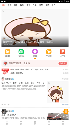 3、提供本地实时热点新闻、二手交易信息、亲子、租房、求职、交友等信息。