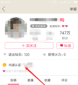 2.刷出一个认证用户点击他的头像进入他的主页面!
