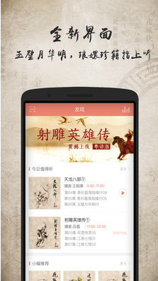 金庸听书APP是一款资源超级丰富的手机听书软件,在这里听武侠·听金庸。金庸官方正版授权,喜欢金庸小说的小伙伴千万不要错过哟,在这里听书不要钱。