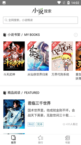 1、这里书籍多多,是款随时在线追书的神器,各种热门小说都有。