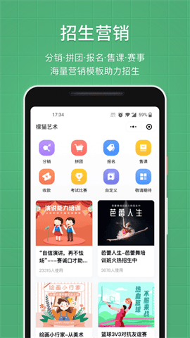 2、学员管理:老师一键通讯录添加学员,显示剩余课时,随时查看购买记录,学员消课详情,提醒学生及时购买课程。