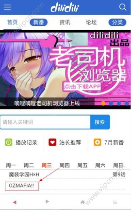 2、进入嘀哩嘀哩页面选择你想观看的动漫,如清风小编选择的OZMAFIA!!这个动漫;