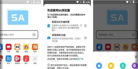 SA浏览器是一款简洁高效无广告的手机浏览器,SA浏览器的界面简洁明了,搜索运行迅速,可快速打开您所输入或收藏的网站,除此之外,还可通过编辑快捷标签这一特殊功能一键直达想要前往的网站