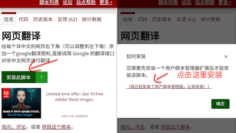 Greasy Fork是一个非常受欢迎的脚本分享站,有大量的开发者在这里分享脚本。从这个网站安装脚本也很简单,直接找到你想要的脚本安装页面,点击“安装此脚本”(第一次在这个网站安装的话,会弹出让用户安装用户脚本管理器的提示,网梭浏览器内置脚本管理器,直接安装即可)。