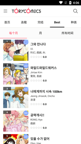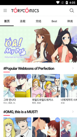 ToryComics是一个主打韩漫的漫画阅读软件,虽然软件是收费的,但是每天都有领取阅读券,同时还有许多限时免费的优质漫画资源,基本上在这里不花钱也是可以免费阅读不少漫画的。同时这里支持多种语言的切换,有能力的同学还可以自己上传翻译。