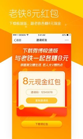 在微博,推送你喜欢感兴趣的内容!邀老铁下载极速版,各赚8元!极速版上刷微博还能赚钱,还等什么,立即下载,让你的钱包鼓起来。更有海量短视频等你来刷,搞笑、音乐、明星、综艺、影视、体育应有尽有!