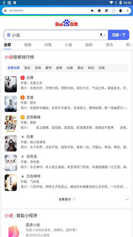 7、比如搜索小说可以看到在百度中为大家搜索,可以搜索百度的完美替身;