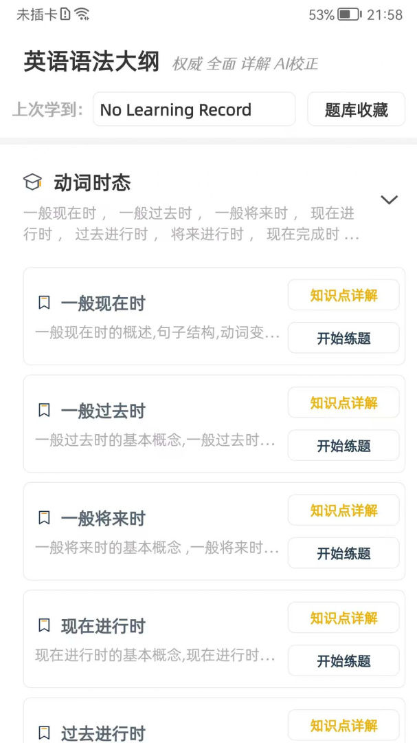 「英语语法精讲」是一款专注于教授英语语法知识的APP,提供了系统、全面的语法内容,并通过清晰易懂的讲解帮助用户理解和掌握英语语法规则,该APP包含丰富的例句和练习题,帮助用户巩固所学知识并提升应用能力,界面简洁友好,操作便捷,适合各个年龄段的英语学习者使用,无论是初学者还是有一定基础的用户都可以在这款APP中找到适合自己的学习内容。