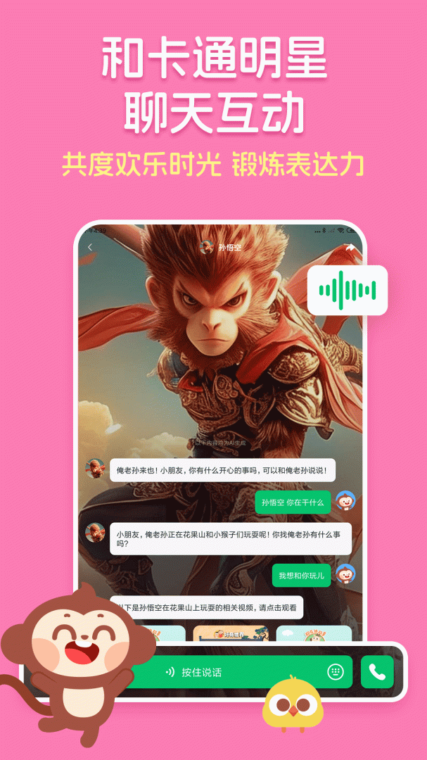 快来和喜欢的卡通明星一起聊天互动吧!