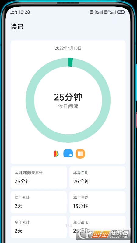 读记是一款阅读时间记录的,为了让你能够保持一个更为良好的阅读习惯,通过手机来完成阅读时间上面的记录,不像一般的屏幕时间记录的软件,它是专门为那些阅读的时间所打造的工具,不过这款软件相对来说更为的小众一些,有需要用到的可以尝试一下这款读记!
