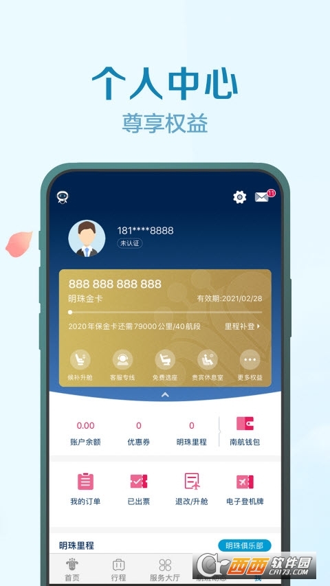 会员服务―支持南航明珠会员注册、登录,实现账单查询、里程查询等服务
