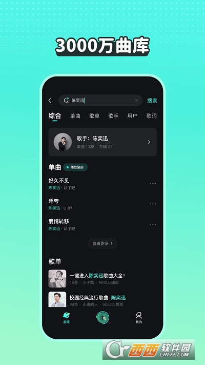 【海量曲库】3千万曲库,流行、网红、古风、动漫、怀旧金曲、摇滚、电音、说唱、民谣、日语、欧美、韩语,所有歌曲应有尽有;陈奕迅、林俊杰等大咖全部网罗;