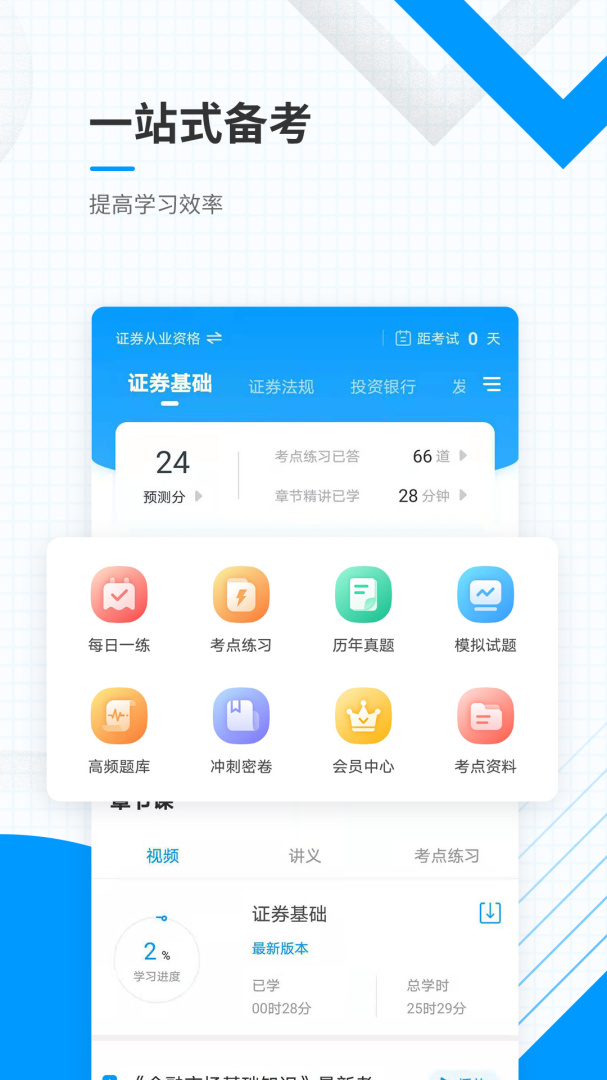 1、金融四项考试项目都能在此复习,证券、基金和期货、银行的课程这里都有;