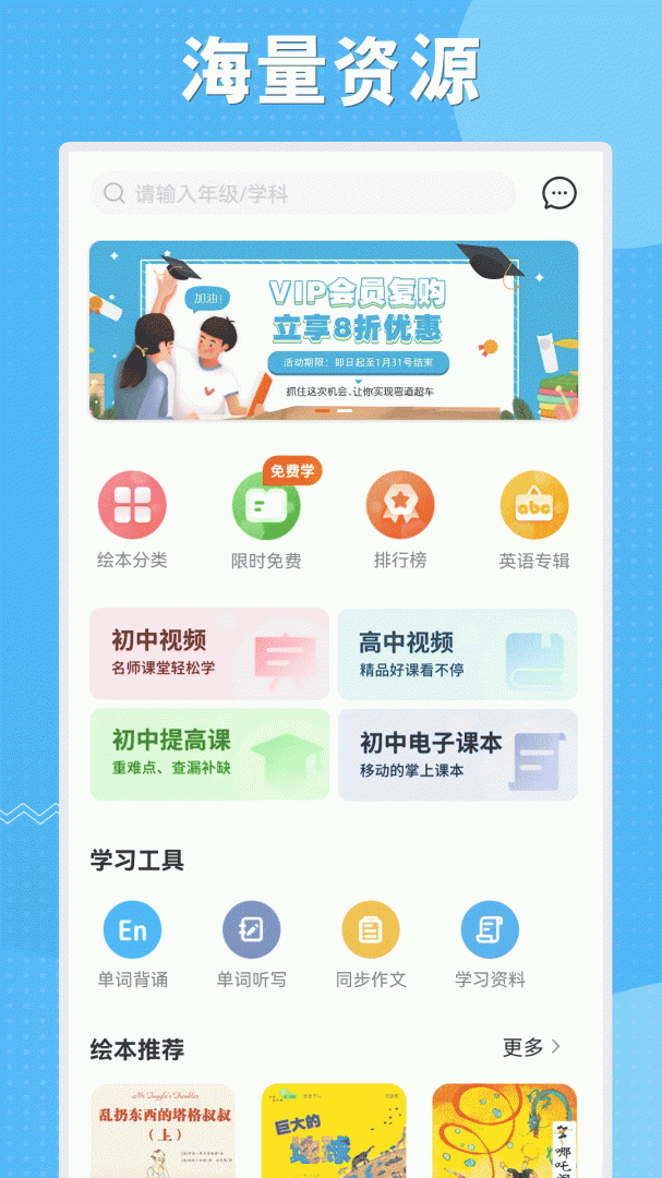 2、内置海量学习资源,每时每刻都能学习更多知识,还有兴趣绘本可以在线查看。