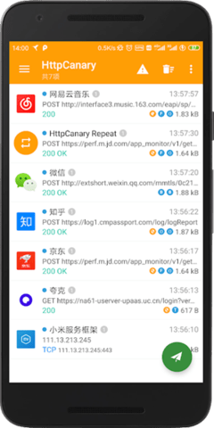 2、支持TCP/UDP/HTTP/HTTPS/WebSocket等多种协议,可以视为Android平台下的Fiddler和Charles。