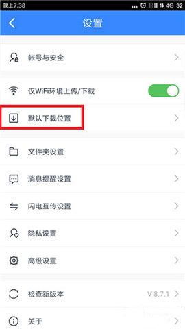 3、在设置功能中找到【默认下载位置】并点击;